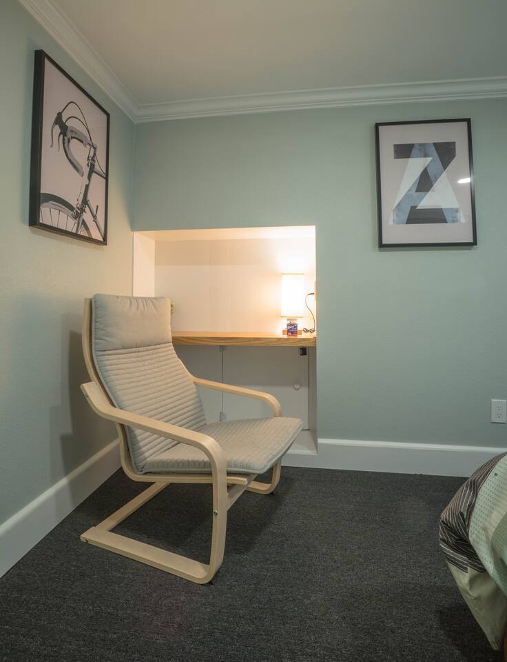 Upstairs unit in a converted house. Located on a busy street but there are quiet tree-lined streets just a short walk away. Near Whole Foods and easy freeway access. Beds were comfortable and off street parking is a big plus. Host is super helpful and responds quickly. Would recommend and would stay here again.