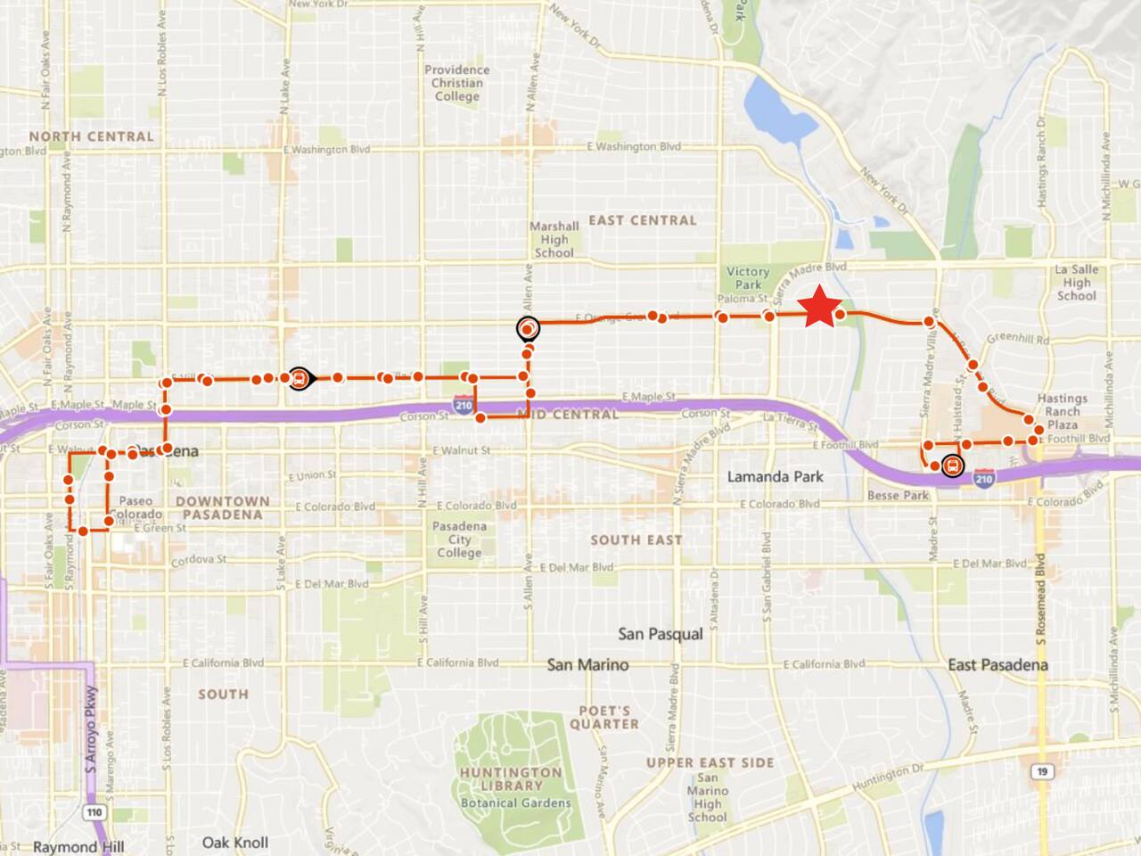 Walking distance to Metro Local lines 268 and 487, Pasadena ARTS routes 31, 40, and 60, and Foothill Transit Route 187.